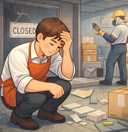 - 상황: 임대료·인건비 부담으로 매출이 줄고, 더 버티면 빚만 늘어나는 상태