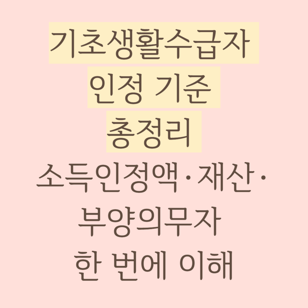 기초생활수급자 인정 기준 총정리 소득인정액·재산·부양의무자 한 번에 이해 📌장기요양보험 등급 판정 잘받는 방법 오늘은 기초생활수급자 인정 기준을 “정확히 어떤 숫자와 규정으로 판단하는지”에 초점을 맞춰 정리하겠습니다. 2026년에는 기준중위소득이 인상되었고(4인 가구 기준 전년 대비 6.51% 인상), 급여별 선정기준(생계 32%, 의료 40%, 주거 48%, 교육 50%)도 동일 비율로 적용됩니다. 저는 정책 발표자료·정부 안내서·복지 현장 안내 페이지에서 공통으로 반복되는 핵심 규정을 중심으로, 실제 신청자가 가장 많이 막히는 “소득인정액 계산, 재산·자동차 반영, 부양의무자(의료급여 포함) 쟁점”을 순서대로 보여드리겠습니다.복지로 모의계산 바로가기2026 국민기초생활보장 사업안내(PDF) 게시글..